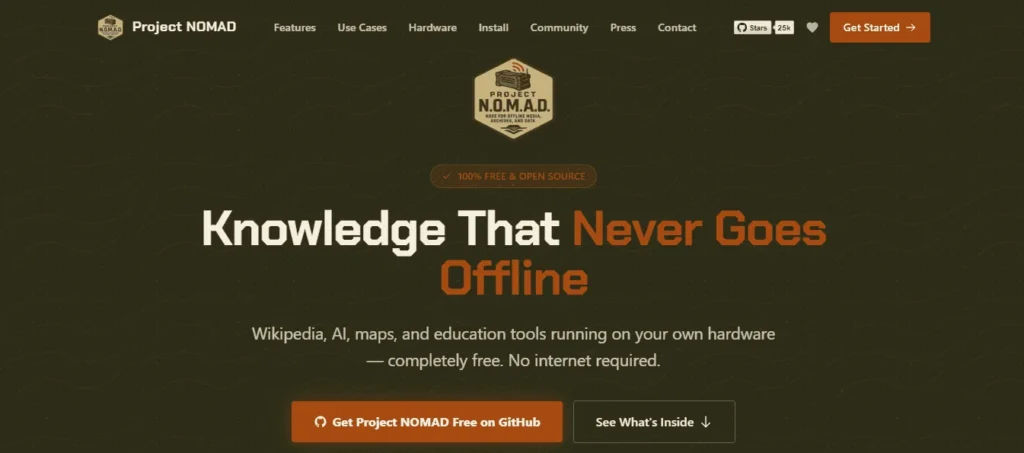 O Project N.O.M.A.D. (Node for Offline Media, Archives and Data) é uma solução de código aberto que possibilita a conversão de um computador em um ambiente de acesso a conteúdos e serviços sem a necessidade de conexão com a internet. Este sistema, que opera localmente e é acessado via navegador, atua como um servidor que agrega arquivos, ferramentas e inteligência artificial em um formato totalmente offline.